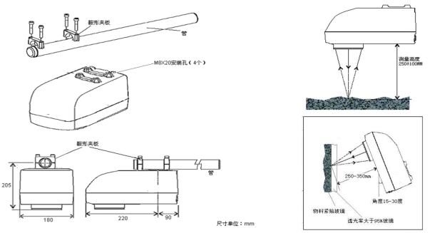 安裝支架根據工況自行定制,安裝圓管直徑25-32mm