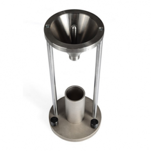 (4)塞住漏斗流出口。將塵樣裝入盛樣量筒,用刮片刮平后倒入漏斗中。